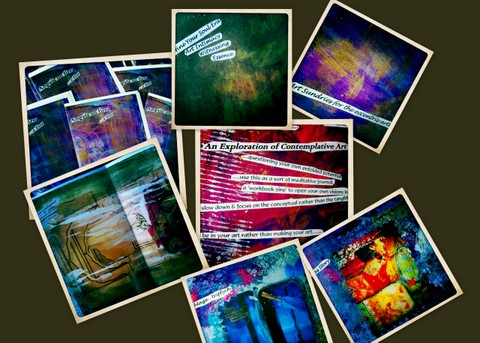 My 3rd zine swap, and more fun. Exploring contemplative art as the main topic, urging some space and quiet in art practice. Unusual for a zine. The color turned out exceptionally well, and felt cool and glossy.